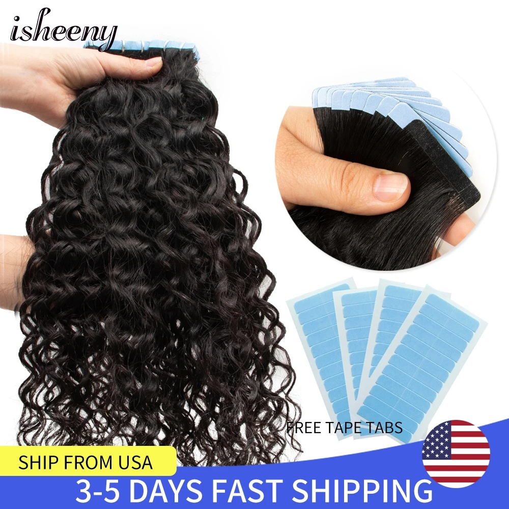 Isheeny Water Wave Tape In Human Hair Extensions Remy Curly Wet And Wavy Hair Bundles 12 26 Natural Color For Black Women Tape Hair Extensions Aliexpress